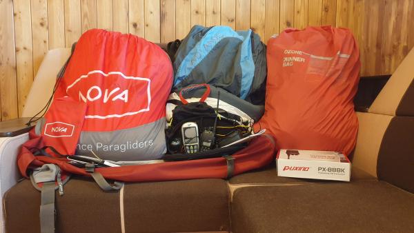 Pārdodu savu ekipējumu, viss ir laba stāvokli:  paraplāns Nova Mentor 4s 11.2015 gaisā bija ap 30 stundām,  Harness  Advance Axess 2 Air M - 3.6, akselerators,  Vinčošanas atkabe, Reserve Ozone Sky System II 110 29 m2, variometrs IQOne, racija PX-888K, soma MacPara. Paraplāns Ozone priekš groundhandlinga Zvaniet 29211626.