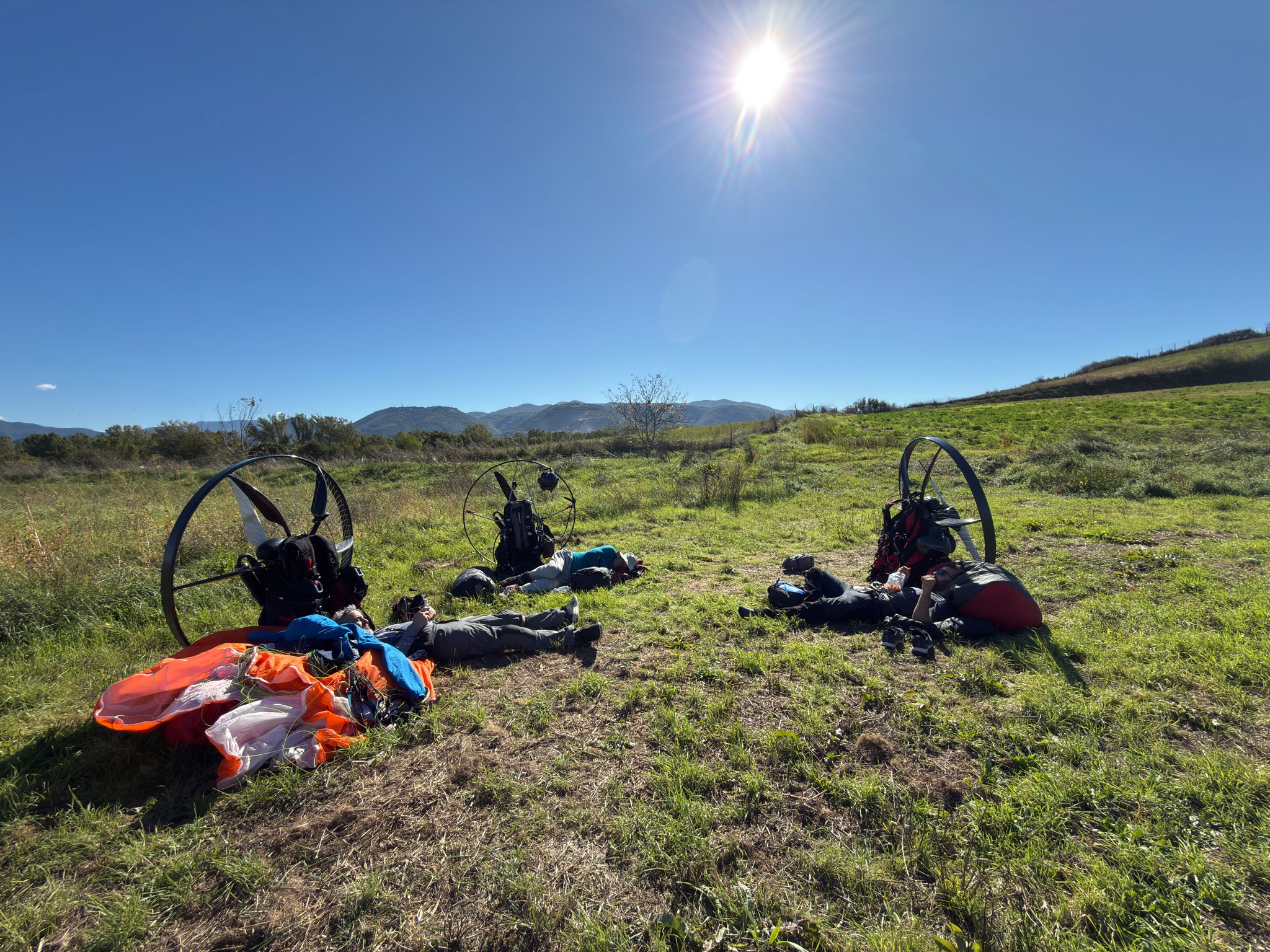 “Šodienas lidojumi noslēgušies, esam nolaidušies piepilsētā… paramotori noslēpti krūmos, dodamies pārnakšņot vietējā viesnīcā,” stāsta Oļegs.