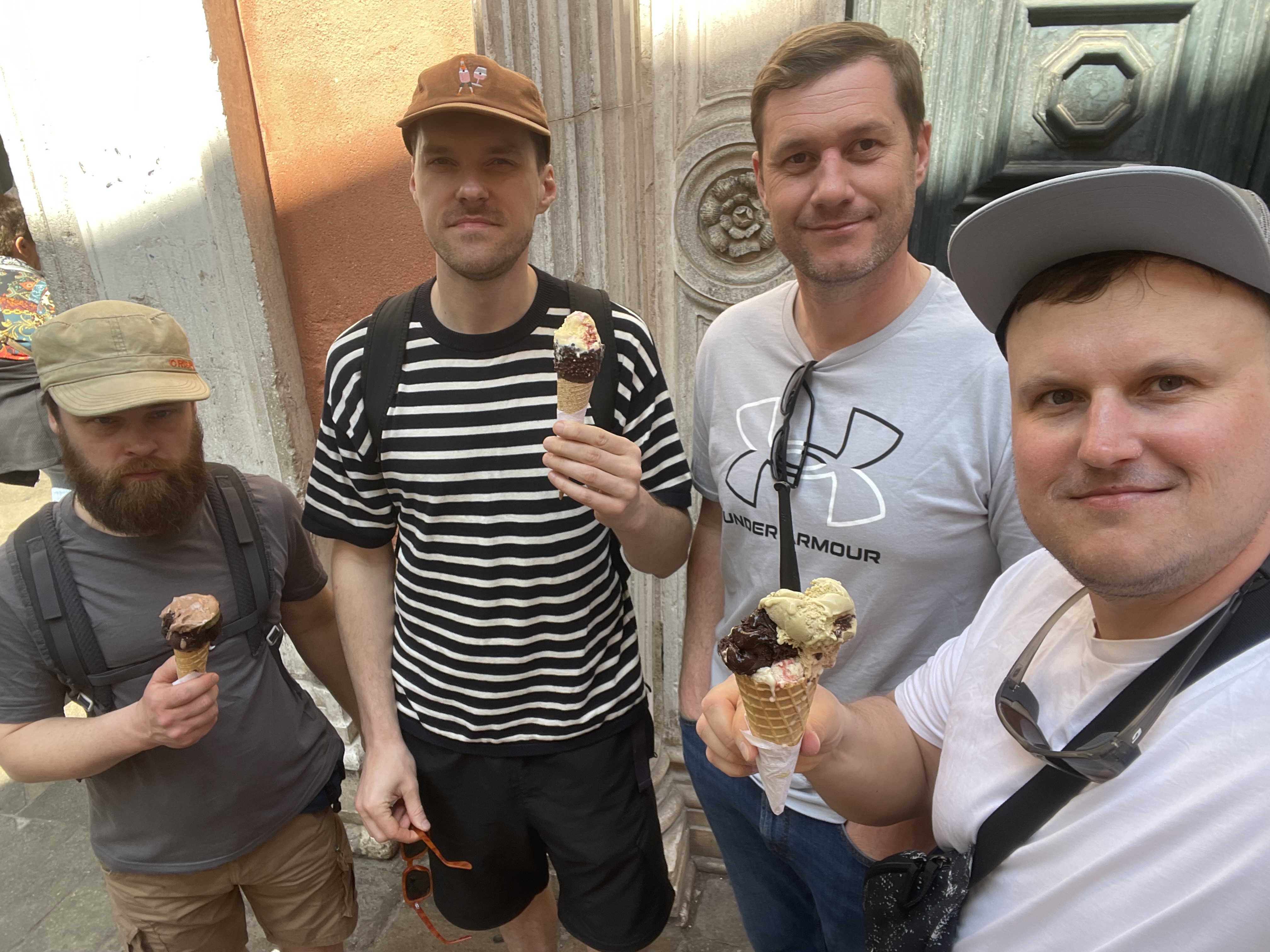 Laikapstākļi bija ideāli un varējām lidot burtiski katru dienu. Kursu vidū ņēmām obligāto brīvdienu, lai atpūstos mentāli no lidošanas un kalna. Braucām uz Venēciju, kur pavadījām izcilu dienu. Sirojām pa Venēcijas ieliņām, bijām DaVinči muzejā, apmeklējām kafejnīcas, veikaliņus, gandrīz veicām impulsa Swatch pulksteņu pirkumus un pat braucām ar gondolu. Izcili pavadīta diena - mājās atgriezāmies burtiski pēc 22:00!